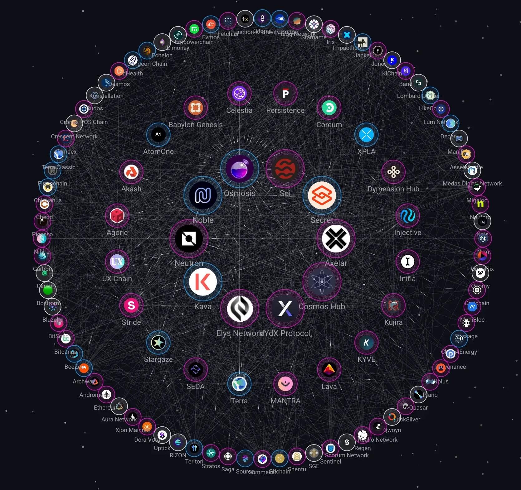 NobleはCosmos SDKをベースに構築されたアプリチェーンで、IBCエコシステムにおけるネイティブ資産の発行に特化している(例:IBCに直接接続されたネイティブUSDC)。Nobleがローンチする以前、Cosmos系アプリチェーンはUSDCを利用する際にブリッジに依存せざるを得なかった。しかしNobleの登場により、IBCおよびCCTPの相互運用性を通じて、dYdXやOsmosis、Neutronといった主要アプリチェーンに対し、ネイティブUSDCが直接供給されるようになった。これまでに、Nobleは3億6500万ドル以上のUSDC発行と、累計193億ドルの取引ボリュームを実現している。