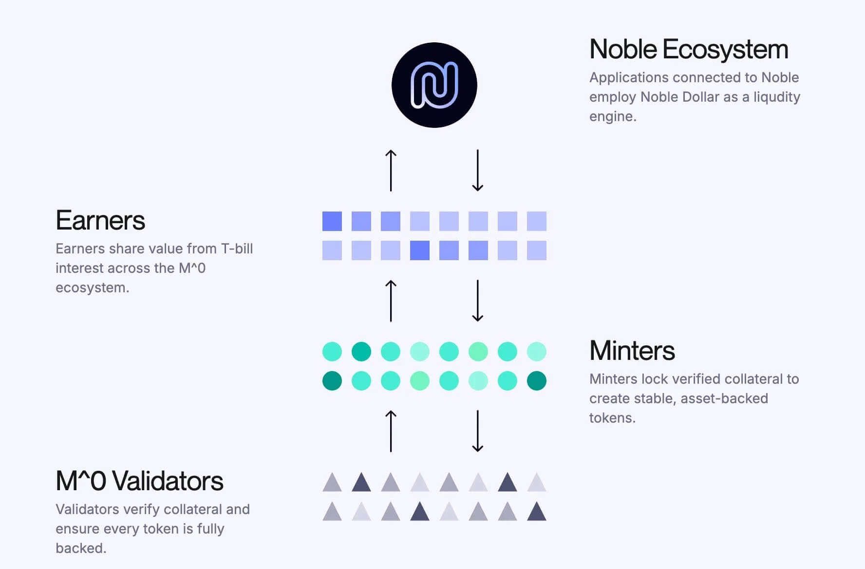 USDNの担保モデルは、B2B向けステーブルコイン・インフラを提供するM0 プロトコルとの協業によって構築されている。M0は、機関投資家が共通の流動性レイヤーを活用して独自のステーブルコインを発行できる仕組みを提供する。従来の単一発行者モデルでは、同じ主体が準備資産の管理とコンプライアンス対応を担う必要があったが、M0では複数のパートナーが同じ基盤流動性を利用してカスタム・ステーブルコインを発行できる。つまり、Nobleは大規模な準備資産の直接管理やコンプライアンスの負担を抱えることなく、M0のインフラを活用してUSDNを発行できる。