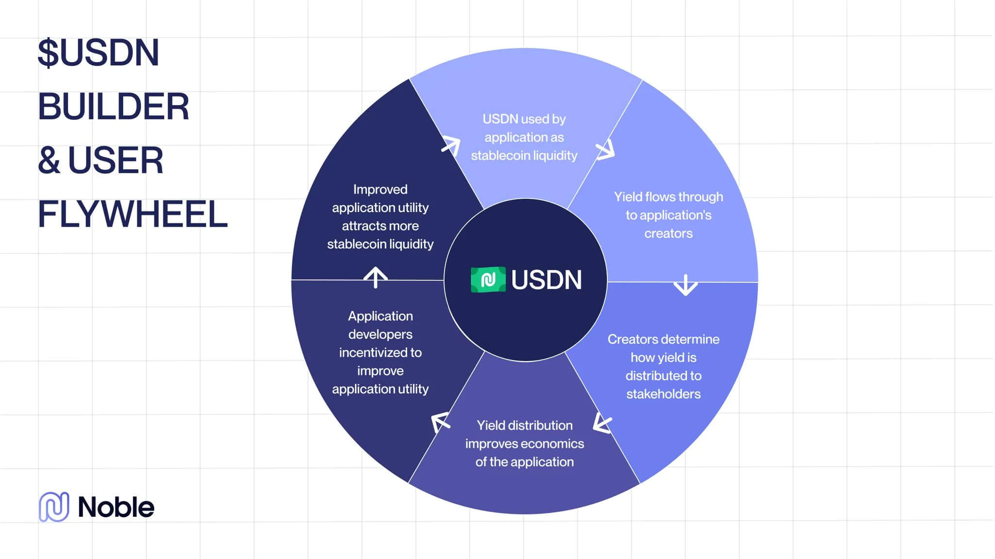 これにより、開発者はより多くのUSDN流入を呼び込むために新しい機能やプログラム設計を導入する強い動機を持つことになる。その結果、Nobleの発行量は拡大し、資本基盤が厚みを増し、3者すべてが成長の果実を分かち合う、エコシステム拡大のポジティブな循環が回り始める。